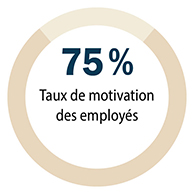 | 2.1 Offrir une expérience employé valorisante en favorisant une culture d’innovation | 12. Indice de motivation des employés au travail | 78 % | 75 % |